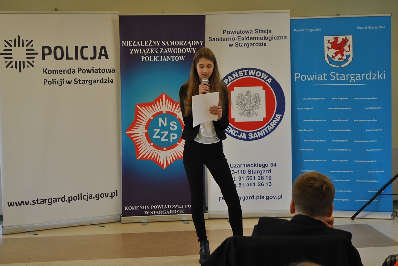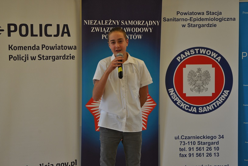 Niektóre prace i wiersze poważne, inne z humorem, ale wszystkie na bardzo ważne tematy, pokazujące jak dużą świadomość mają młodzi ludzie. Pomysłowość w wykonaniu prac, literacki poziom i oryginalność kolejny raz zaskoczyły jury, które oprócz nagród głównych, postanowiło przyznać również wyróżnienia. Najlepsi autorzy prac otrzymali ufundowane przez firmę Bridgestone Stargard, Starostwo oraz Zarząd Terenowy NSZZ Policjantów KPP w Stargardzie nagrody w postaci tabletów, dysków zewnętrznych, zegarków oraz słuchawek. Nie zabrakło także elementów odblaskowych, które trafiły do uczestników spotkania. Na koniec zwycięzcy zaprezentowali swoje utwory przed publicznością.