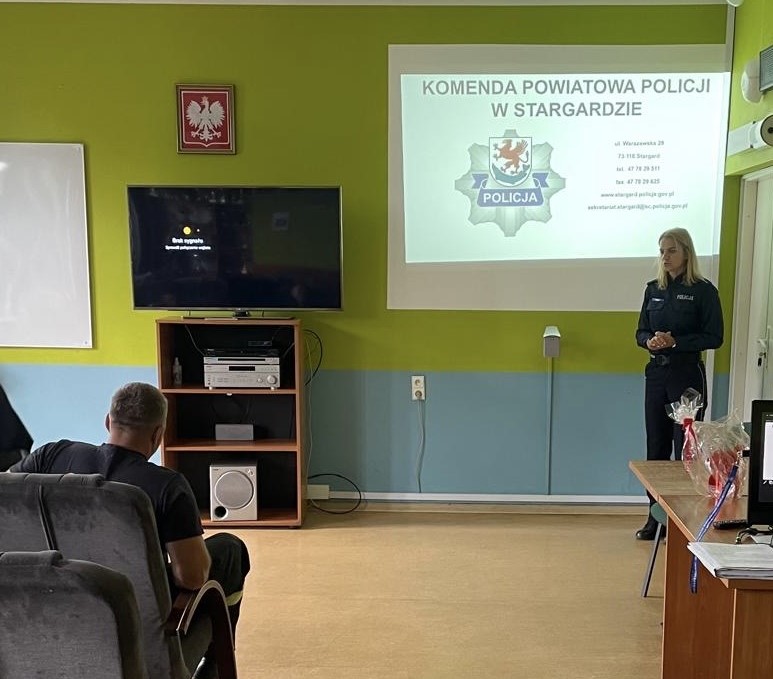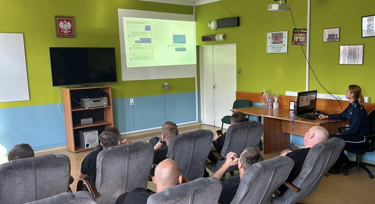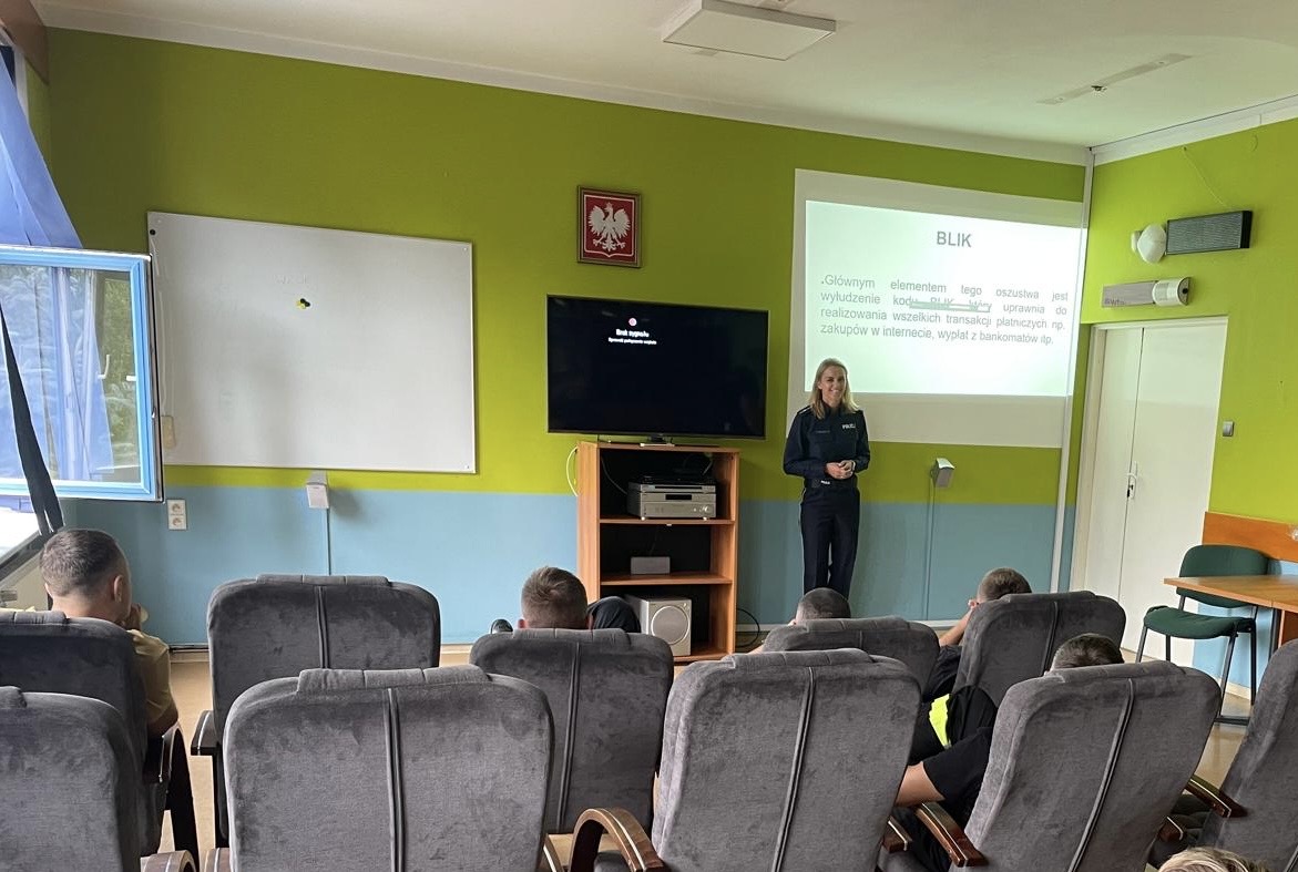 Funkcjonariusz omówił również, jak reagować na podejrzane telefony, wiadomości SMS i e-mail oraz jak weryfikować tożsamość osób proszących o pomoc finansową. Spotkanie miało na celu podniesienie świadomości strażaków, którzy również mogą paść ofiarami oszustów, oraz którzy w swojej codziennej służbie także mogą spotkać osoby narażone na działania przestępców.