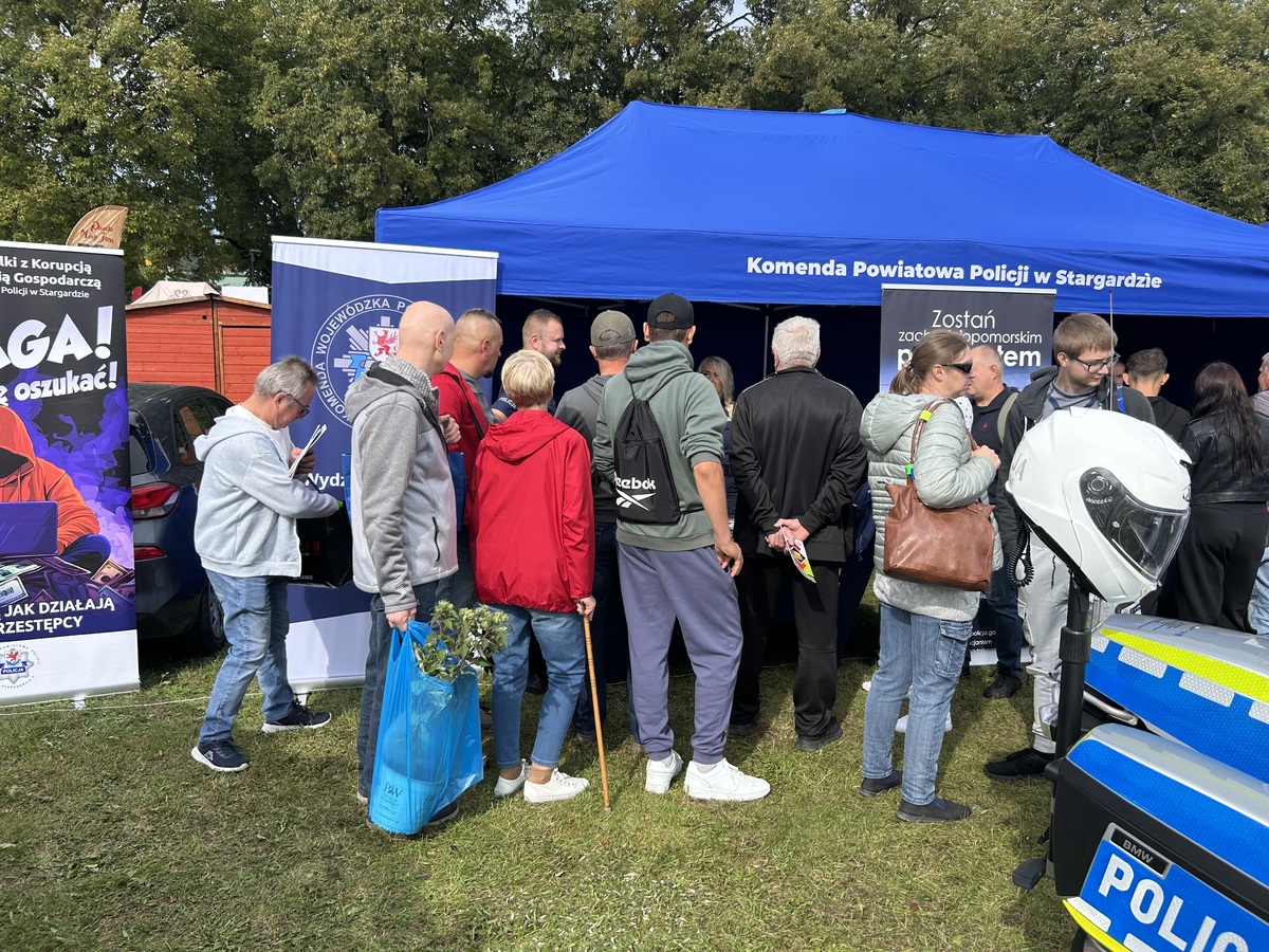 Policja przygotowała również specjalne stoiska profilaktyczne, gdzie odwiedzający mogli porozmawiać o bezpieczeństwie, dowiedzieć się jak chronić się przed oszustwami – szczególnie w sieci – oraz poznać zasady bezpiecznego poruszania się po drogach. Najmłodsi mieli okazję wziąć udział w konkursach, zdobyć ciekawe gadżety i zobaczyć z bliska policyjny sprzęt.