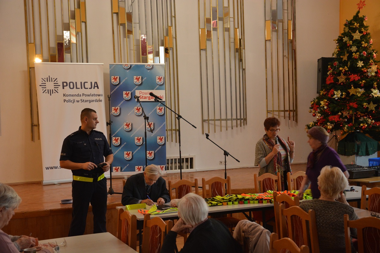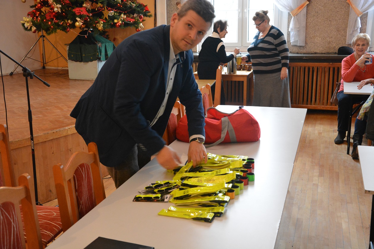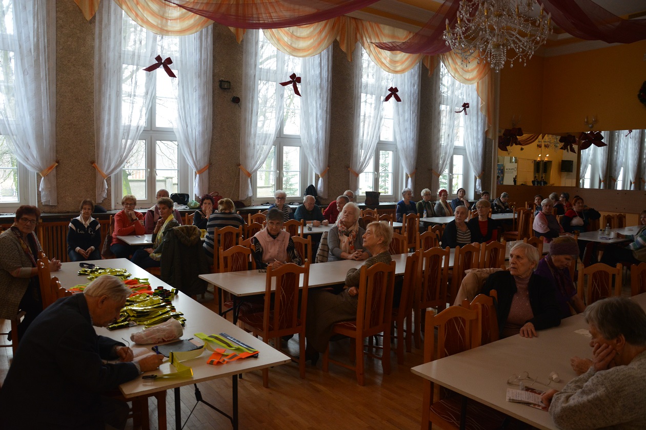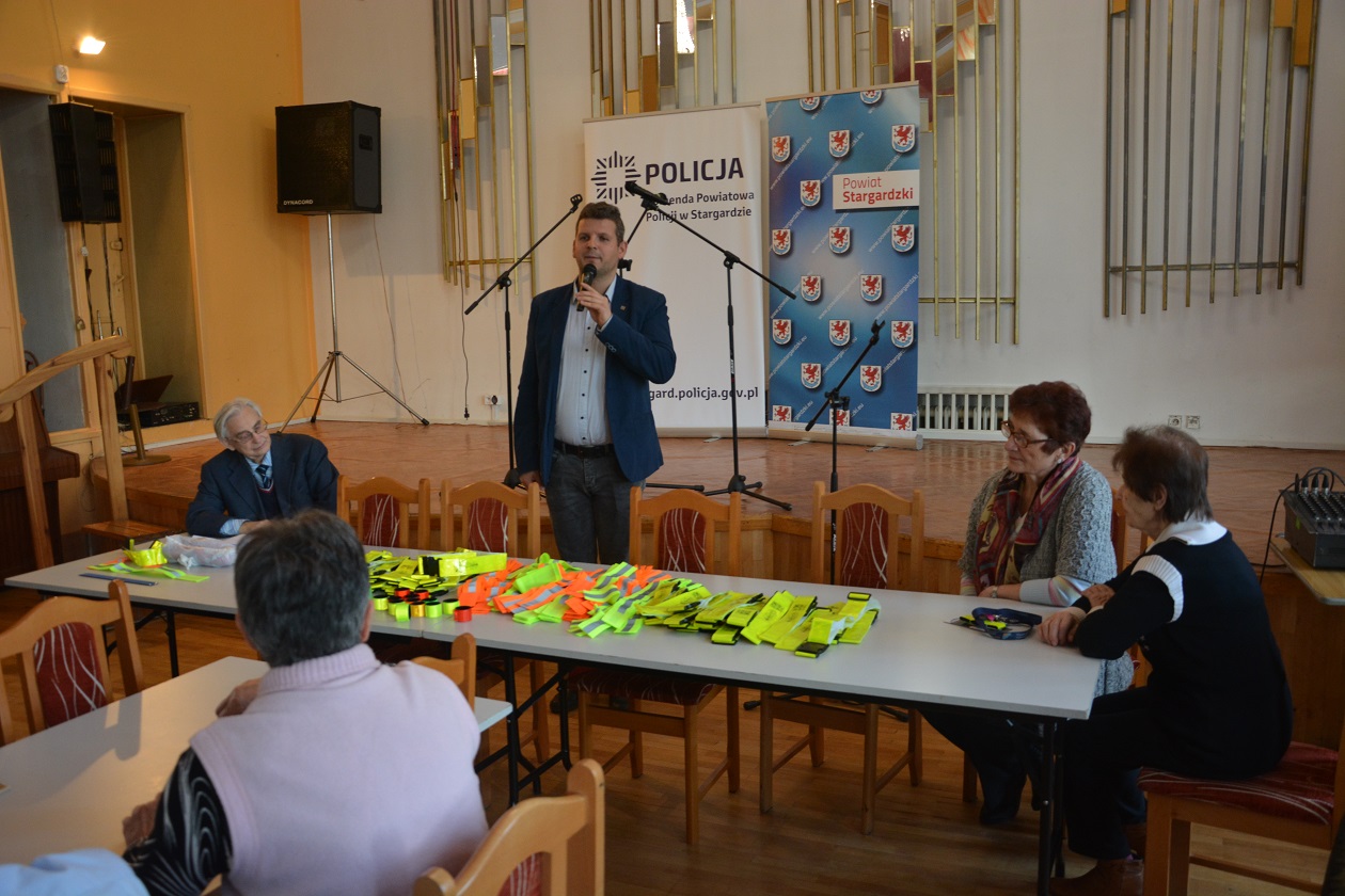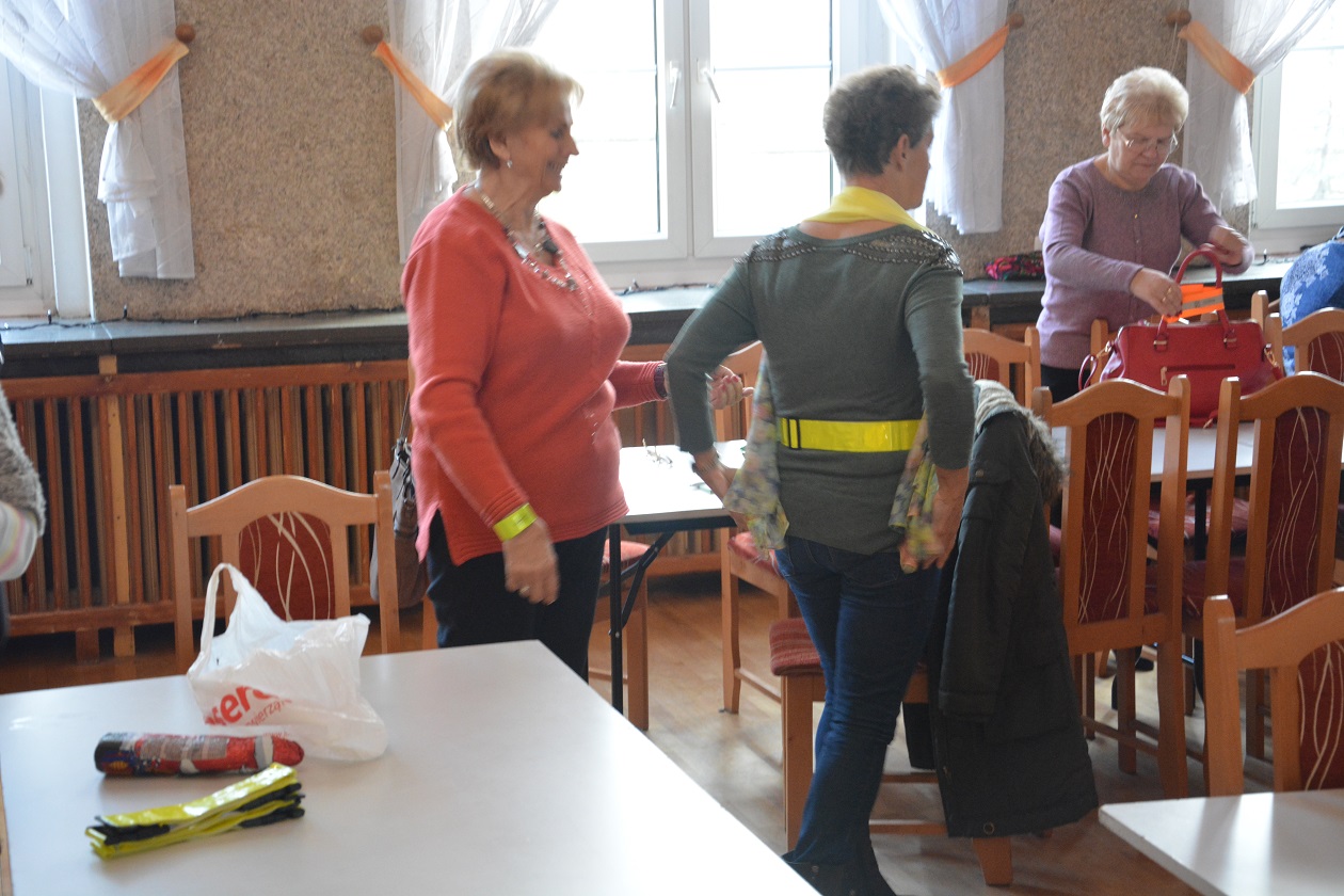 I nie zwlekając w działaniach jeszcze tego samego dnia Krzysztof Kozłowski z Powiatowej Rady Bezpieczeństwa oraz podkom. Łukasz Famulski ze stargardzkiej komendy współpracując z Panią Wandą Wysocką – Przewodniczącą Zarządu Rejonowego Polskiego Związku Emerytów, Rencistów i Inwalidów w Stargardzie na zorganizowanym spotkaniu w Domu Kultury Kolejarza przekazali seniorom mnóstwo elementów odblaskowych, które mają poprawić bezpieczeństwo na drodze.