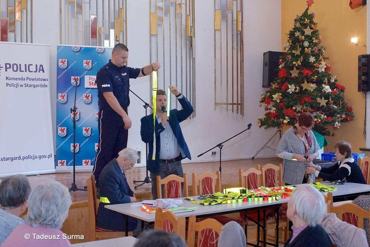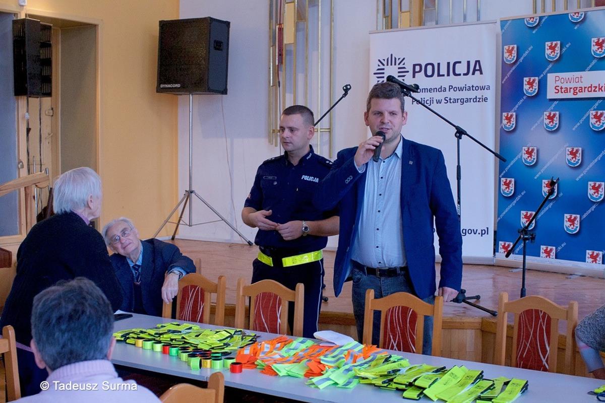 Krzysztof Kozłowski z Powiatowej Rady Bezpieczeństwa oraz podkom. Łukasz Famulski ze stargardzkiej komendy systematycznie prowadzą spotkania profilaktyczne, podczas których szkolą uczestników jak korzystać z elementów odblaskowych. Dotyczy to głównie funkcjonalności tych gadżetów, bo samo ich posiadanie w kieszeni nie czyni nas bezpieczniejszym.