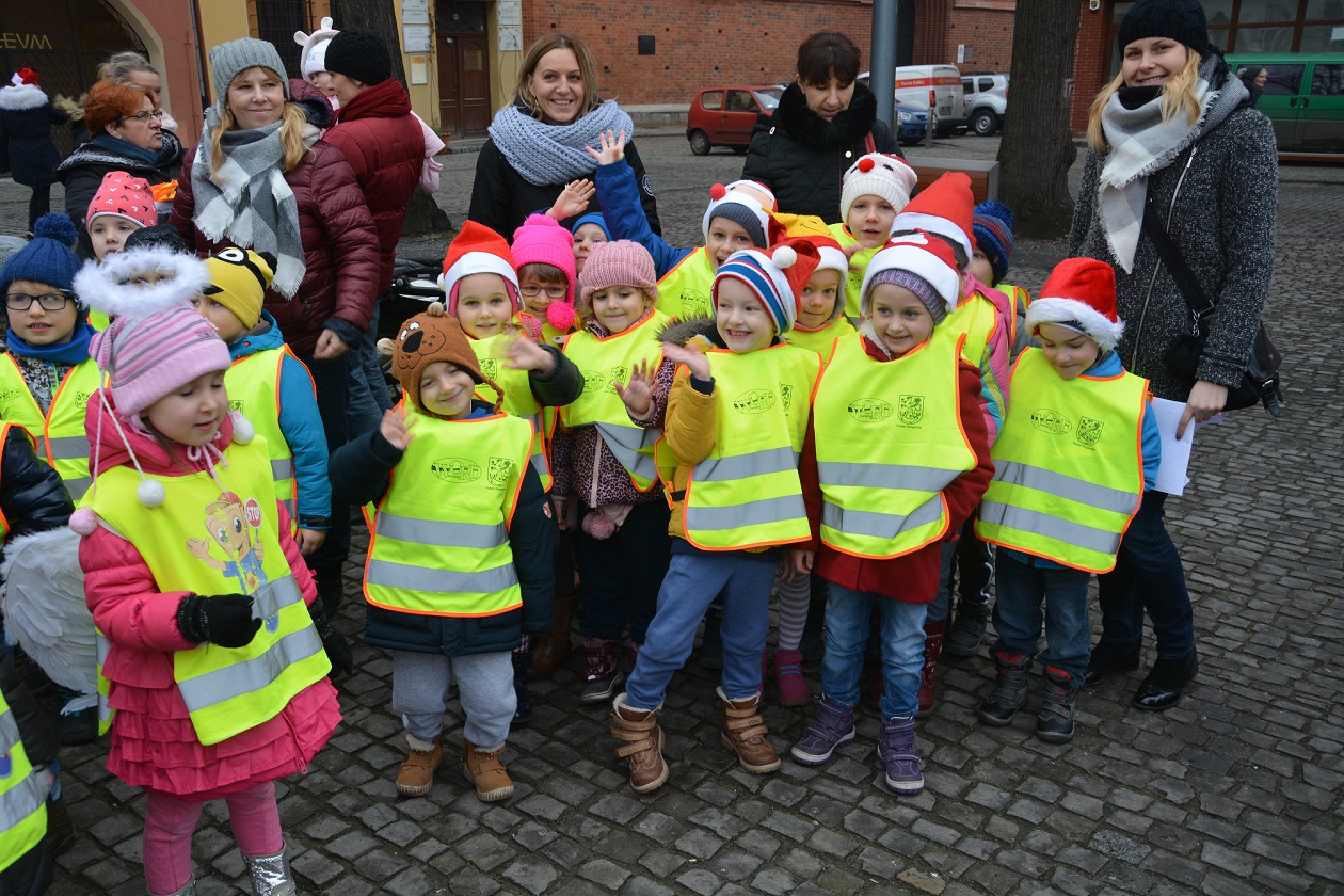 W kolędowaniu udział wzięli również stargardzcy policjanci, którzy korzystając z okazji tak licznego spotkania dzieci i młodzieży przekazali wiele cennych wskazówek dotyczących bezpiecznego poruszania się po drodze i w jej pobliżu. Dodatkowo mundurowi rozdali niemal wszystkim uczestnikom elementy odblaskowe, które wciąż cieszą się dużym zainteresowaniem.