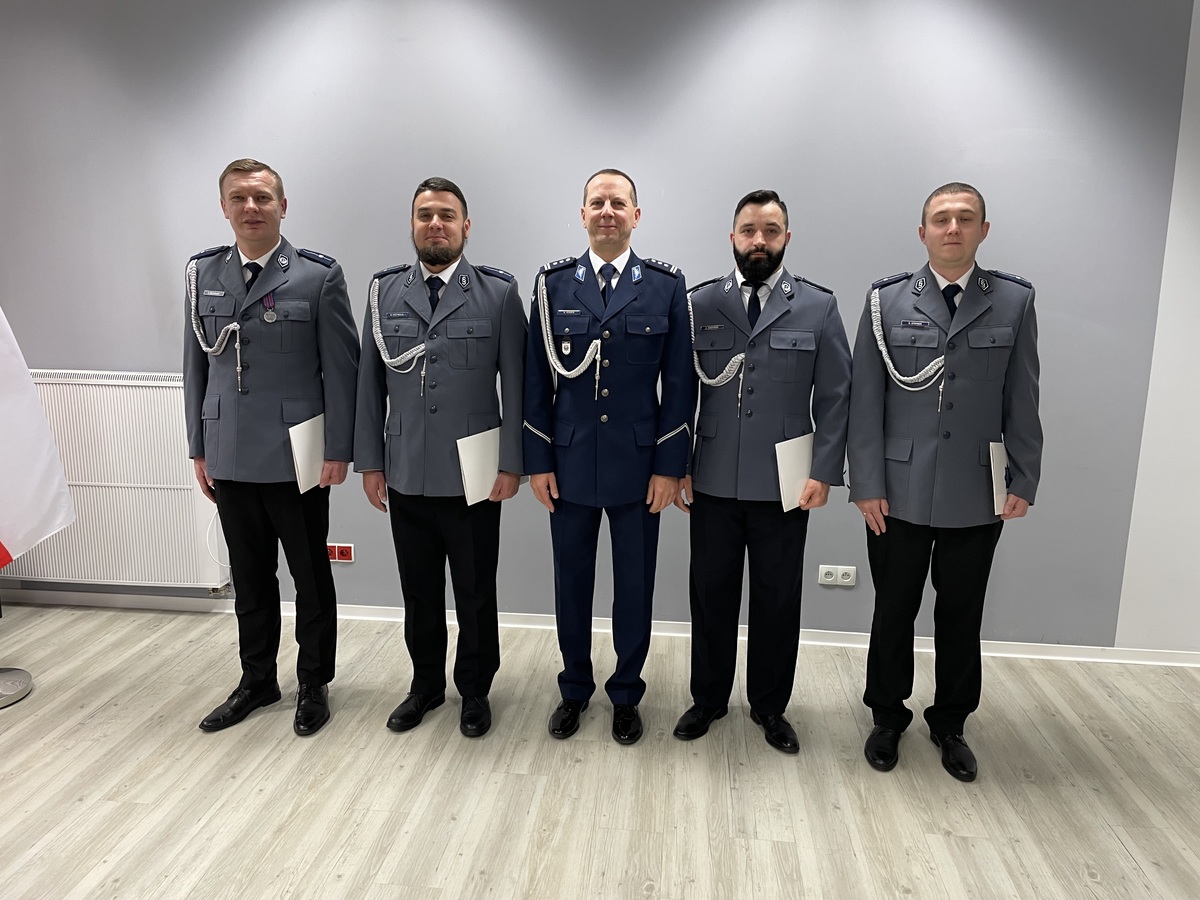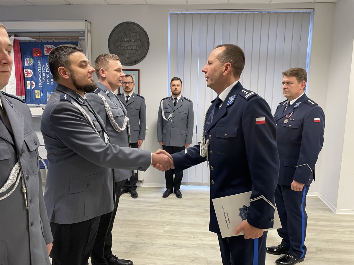 Podwyższanie swoich kwalifikacji i umiejętności zawodowych jest dla policjantów bardzo ważnym elementem ich służby. Udział w różnych kursach i szkoleniach pozwala funkcjonariuszom jeszcze profesjonalniej wykonywać każde zadanie służbowe, ale jest także otwarciem drogi do awansu na wyższe stopnie i stanowiska. Dzisiaj w Komendzie Powiatowej Policji w Stargardzie odbyła się uroczystość wręczenia aktów mianowania na stopień młodszego aspiranta Policji. Wyróżnionych zostało 4 policjantów, którzy poprzez swoją sumienność, zaangażowanie i profesjonalizm w codziennej służbie zasłużyli na ten ważny krok w swojej karierze zawodowej. Akty mianowania wręczył insp. Sławomir Bober, Komendant Powiatowy Policji w Stargardzie, w obecności swojego Zastępcy i przełożonych mianowanych policjantów. Komendant podziękował awansowanym funkcjonariuszom za wzorowe i rzetelne wypełnianie obowiązków służbowych podkreślając, że awans jest ważnym krokiem w karierze służbowej policjantów, a jednocześnie dowodem uznania za ciężką pracę i wysiłek wkładany w realizację zadań służbowych. W swoim wystąpieniu insp. Sławomir Bober złożył policjantom serdeczne życzenia dalszych sukcesów zawodowych oraz satysfakcji ze służby.
