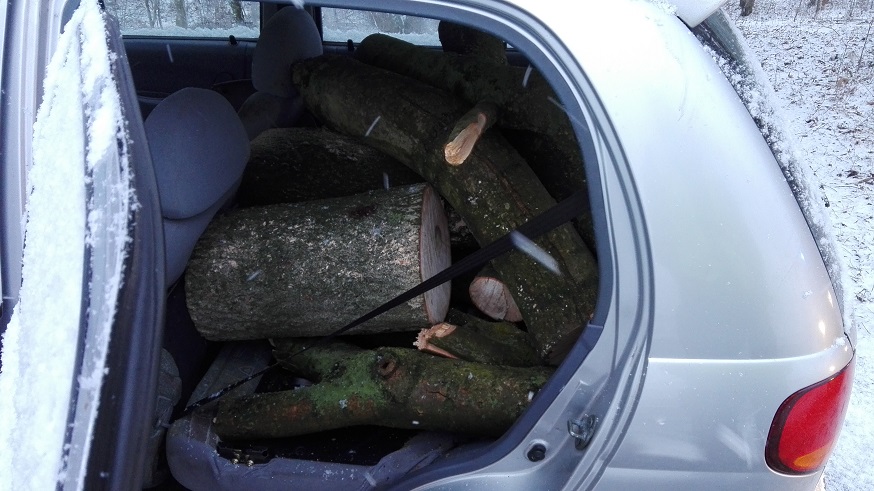 Jak się okazało 48-latek i jego 19-letni syn nie posiadając asygnaty postanowili zagospodarować drzewo do swojego kominka, dlatego w tym celu pocięli pień na kawałki i drewno zapakowali do Matiza.