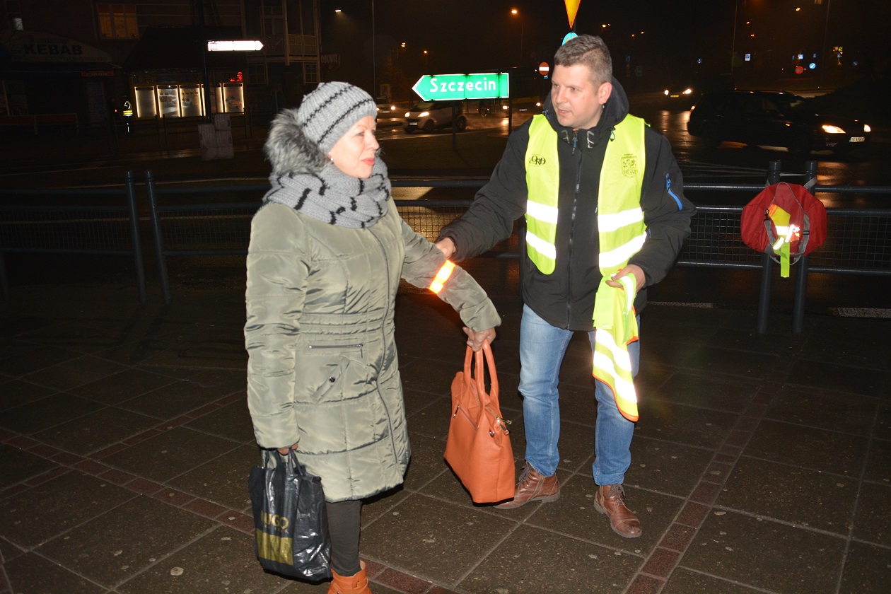 Mundurowych ze stargardzkiego Ruchu Drogowego i Prewencji wspieranych przez przedstawicieli Powiatowej Rady Bezpieczeństwa w Stargardzie na ulicach można było dostrzec już od wczesnych godzin porannych. Podczas akcji prowadzonej między innymi w centrum miasta, na przystankach autobusowych i w rejonie dworca kolejowego oraz pod przedszkolami wszyscy niechronieni uczestnicy ruchu drogowego zostali obdarowani elementami odblaskowymi. Biorąc pod uwagę fakt, że odblask pozostawiony w domu bądź schowany w kieszeni nie czyni nas bezpieczniejszym, idea dzisiejszych działań była taka, aby element odblaskowy natychmiast założyć na siebie.